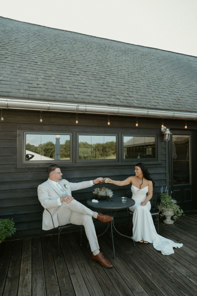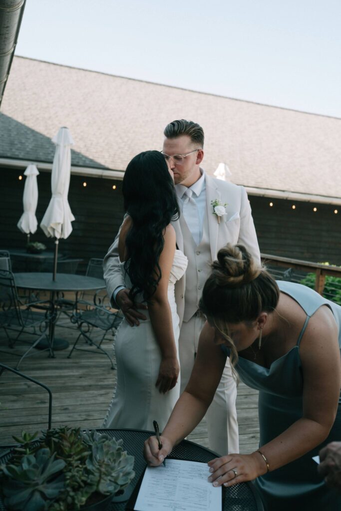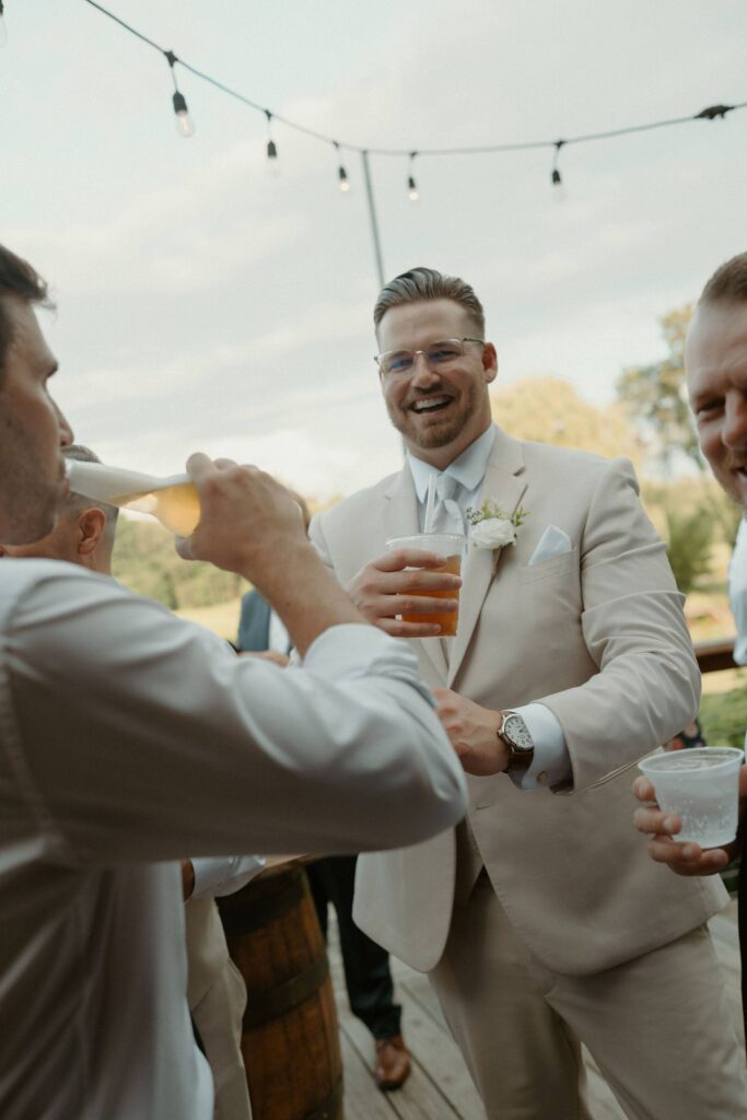Anna and John wanted a ceremony taking place later in the day, so we decided early on to have a welcome cocktail hour for guests to mingle together before the ceremony and it was amazing! The tented outdoor space at Westers Family Winery in Rives Junction was the perfect location for their welcome hour. Guests enjoyed appetizers and cocktails while taking in the beautiful views. One unique elements was a watering can for guests to sign. Then the couple used it during their tree planting ceremony. When it was time, guests headed towards the willow tree to relax in the shade and take in the ceremony. Ann’s father even officiated their ceremony and paired with the couple’ shared their’s written vows made it so special.
