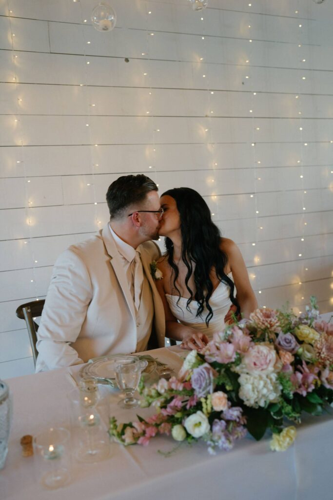 The reception space in the barn glowed with rows candles with green accents on the tables and macron favors awaiting guests at their seats. The evening flowed from one moment to the next as everyone enjoyed the summer evening and had fun on the dance floor! It was magic from start to finish planning with these two and watching them enjoy their wedding day!
